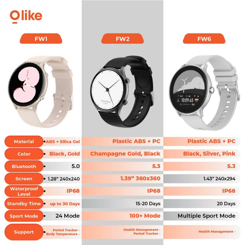 Olike Smartwatch FW6 Jam Digital Smart Watch IP68 Waterproof Bluetooth Call 1.43"Display With Healty Management 20 Day Battery Life Jam Tangan Wanita Sport Lifestyle