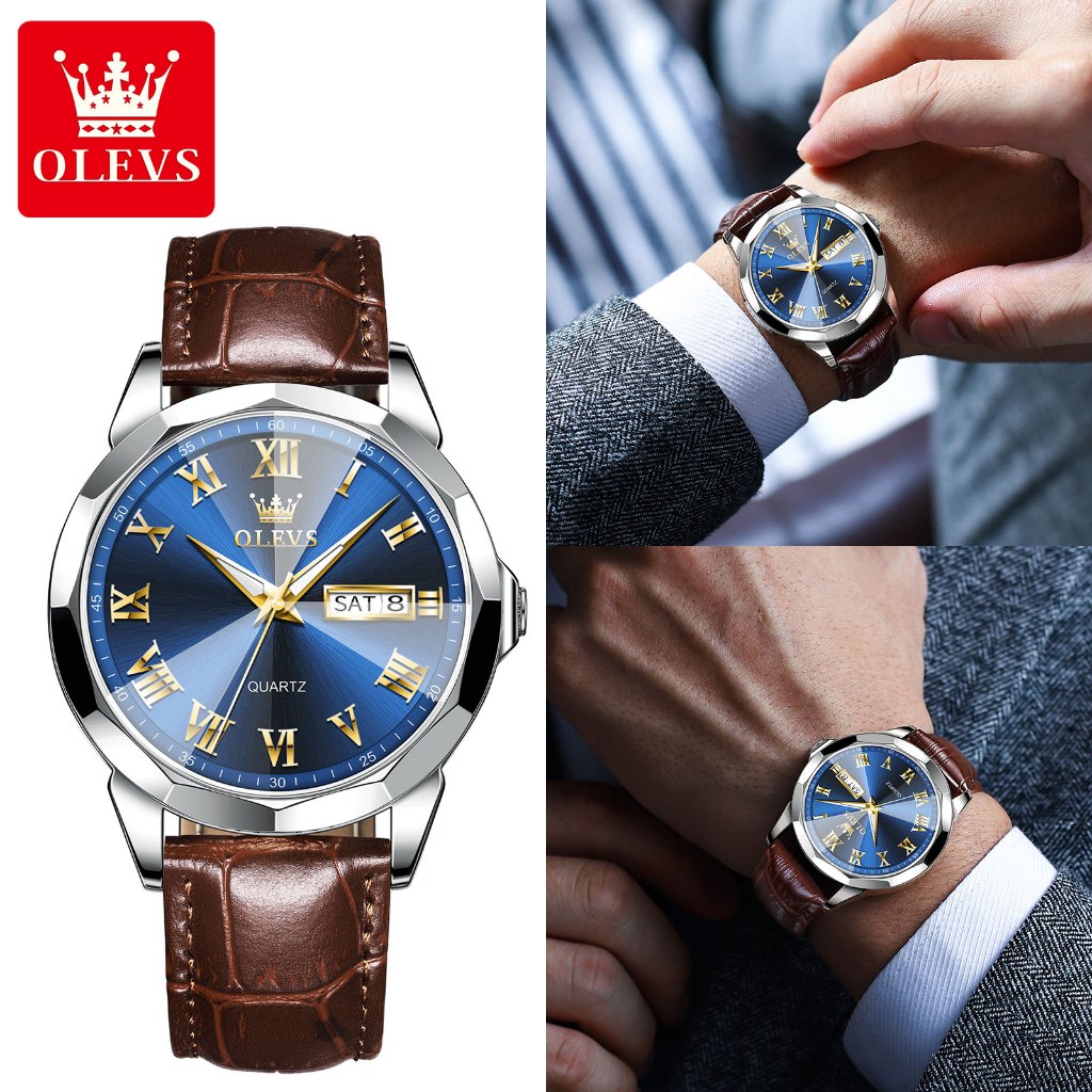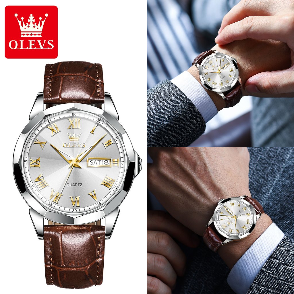 OLEVS Jam Tangan Pria Casual Anti Air Original Analog Keren Tahan Watch Men Kulit Terbaru Mewah