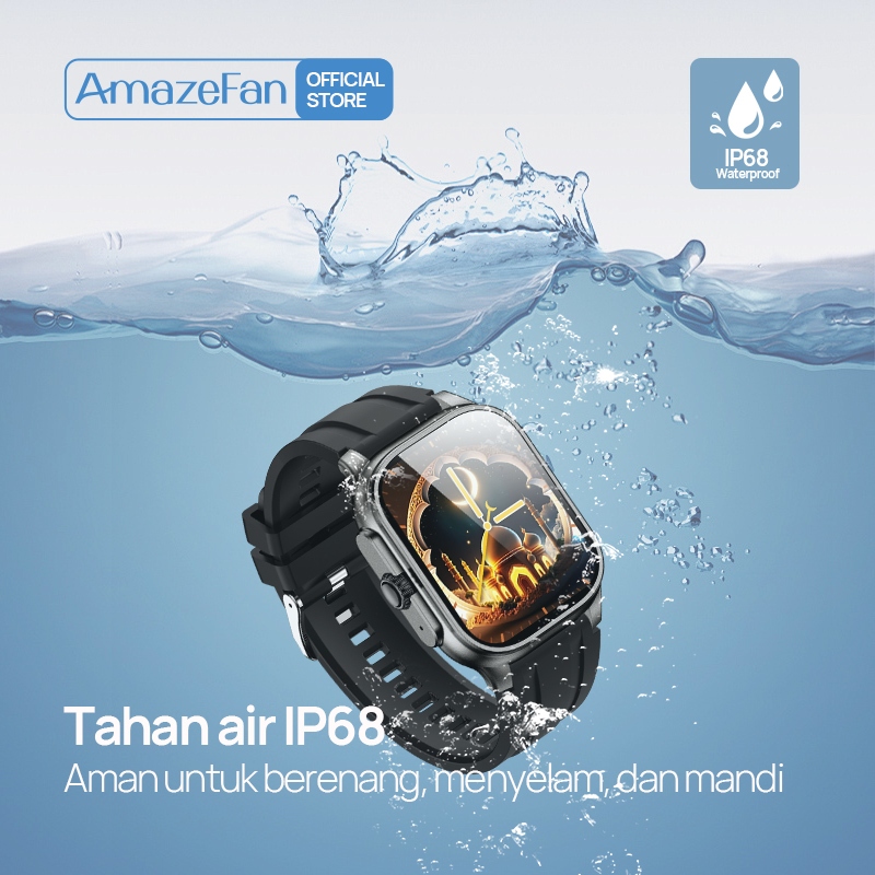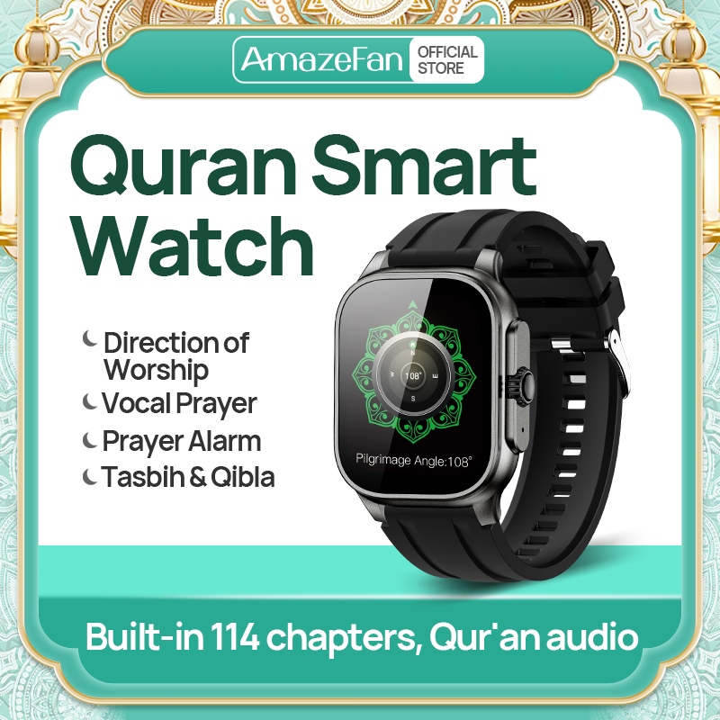 Smartwatch Muslim Premium - Titanium, IP68, Audio Quran 114 Surah, Tasbih Digital, Alarm Shalat, Kalender Hijriah, Deteksi Kesehatan, hadiah lebaran
