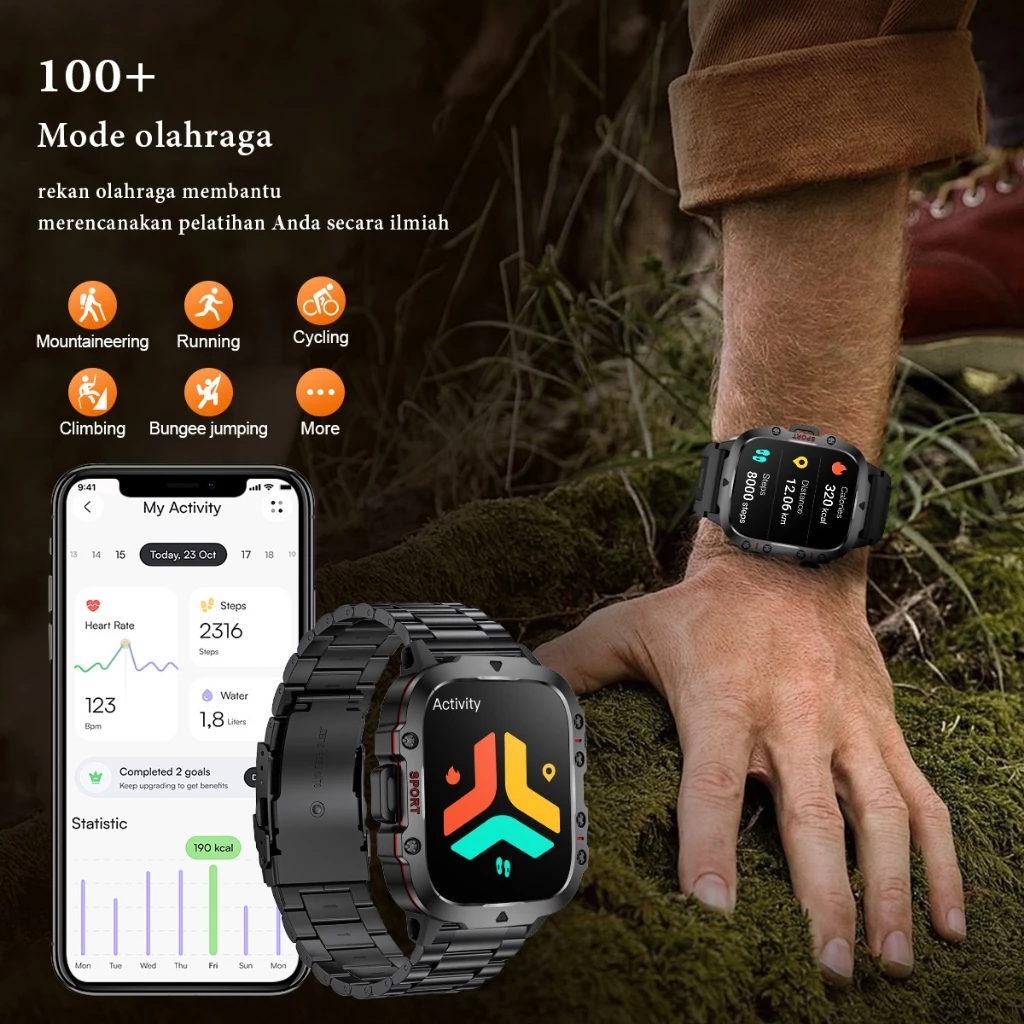 SAMSUNG Jam Tangan Pintar Tahan Air 3ATM Asli Pria Luar Ruangan 100+ Olahraga Deteksi Oksigen Darah Layar 1.81 Inci Panggilan Bluetooth Smart Watch untuk Android dan IOS