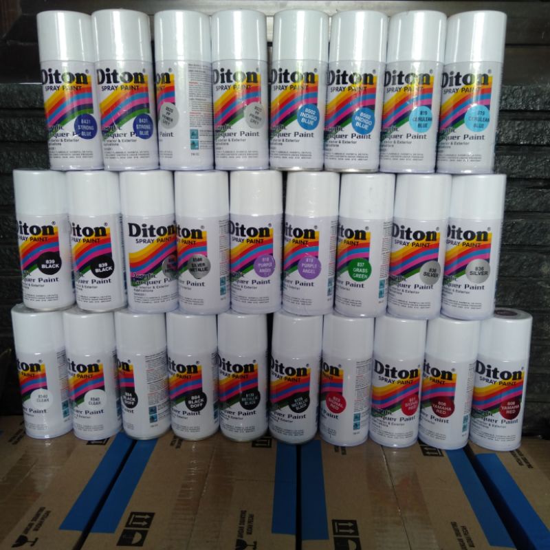 837 GRASS GREEN, 886 SPECIAL RED, 801 HONDA RED, 808 YAMAHA RED, 8102 METALIC YELOW, 819 CERULEAN BLUE, 835 GOLD, 814 ORANGE, 8143 BLUE PURPLE, 8216 CURACAO BLUE, 840 WHITE, 839 BLACK, 884 BLACK DOFF, 8540 CLEAR, 836 SILVER, 8580 SILVER METALIC, 823 SIGNAL RED, 841 YELLOW, 8502 INDIGO BLUE, 830 ROSE PINK, 8190 METALIC RED, 838 MAROON, 818 PURPLE ANGEL, 8431 STRONG BLUE, 825 CHROME YELOW, 8175 SHOGUN BLUE, 829 HINO GREEN, 8173 NINJA GREEN, 8020 PRIMER GREY, 8139 METLC BLACK, 820 WHITE DOFF, 810 CLEAR DOFF, 834 LIGHT GREY, 8001 RED, 8002 PINK, 8003 GREEN, 8004 BLUE, 8005 YELLOW, 8006 ORANGE, HI-TEMP BLACK, HI-TEMP SILVER, 8198 METALLIC GREY, 8172 JUPITER BLUE, 824 DARK GREY, DITON 150CC 18KT, DITON 150CC 24KT