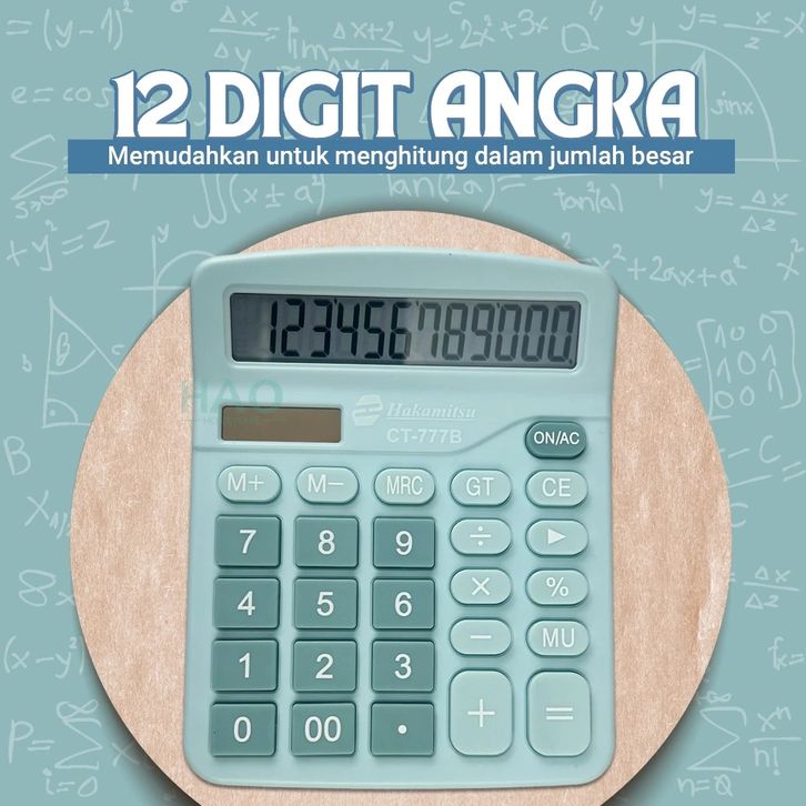 Kalkulator Digital 12 Digit Dual Energi Baterai & Energi Surya / Kalkulator Warna Lucu CT-777B/P