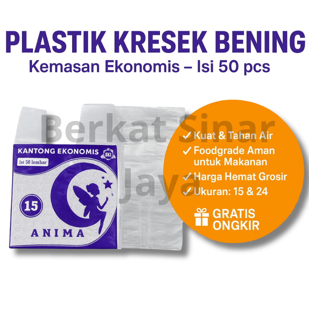 Plastik Kresek Bening Ekonomis Isi 50 Pcs | Kantong Belanja Serbaa Ukuran 15 & 24