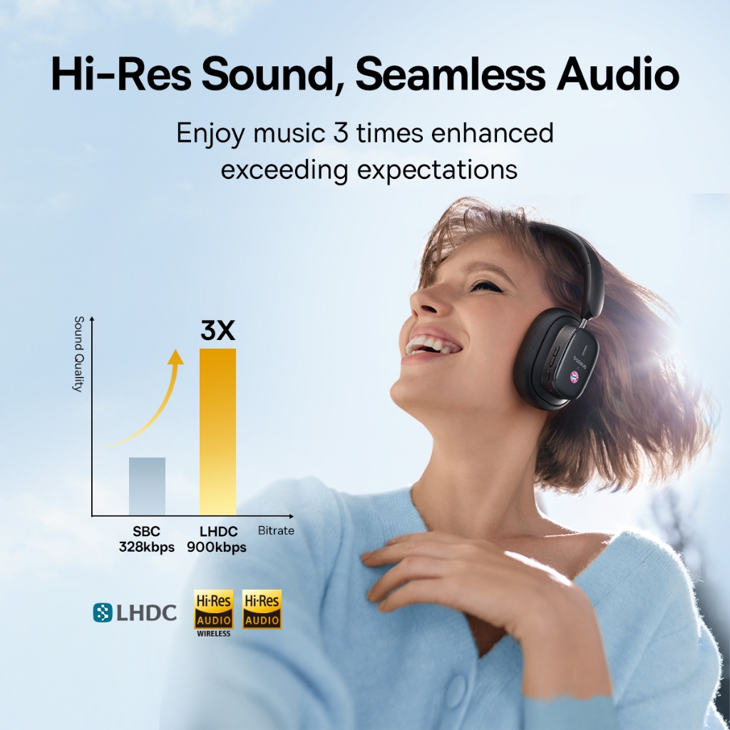 Baseus Headphone H1i ANC Hi-Res Noise-Cancellation Wireless Super Bass Bantalan Lembut