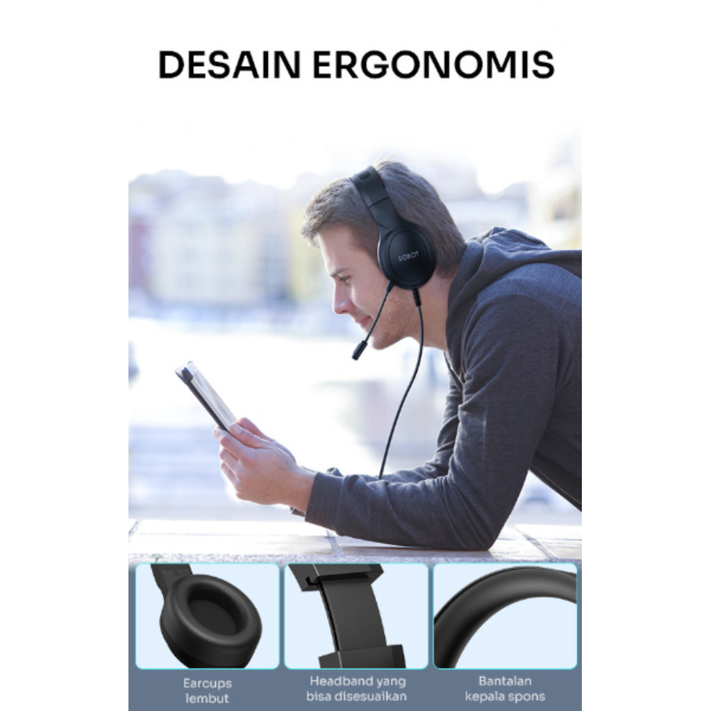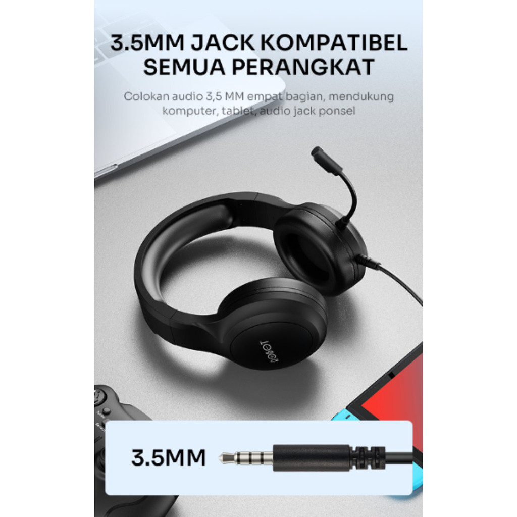 Headset ROBOT RH-P20 Headset Kabel 3.5mm Jack Black - Garansi Resmi 1 Tahun
