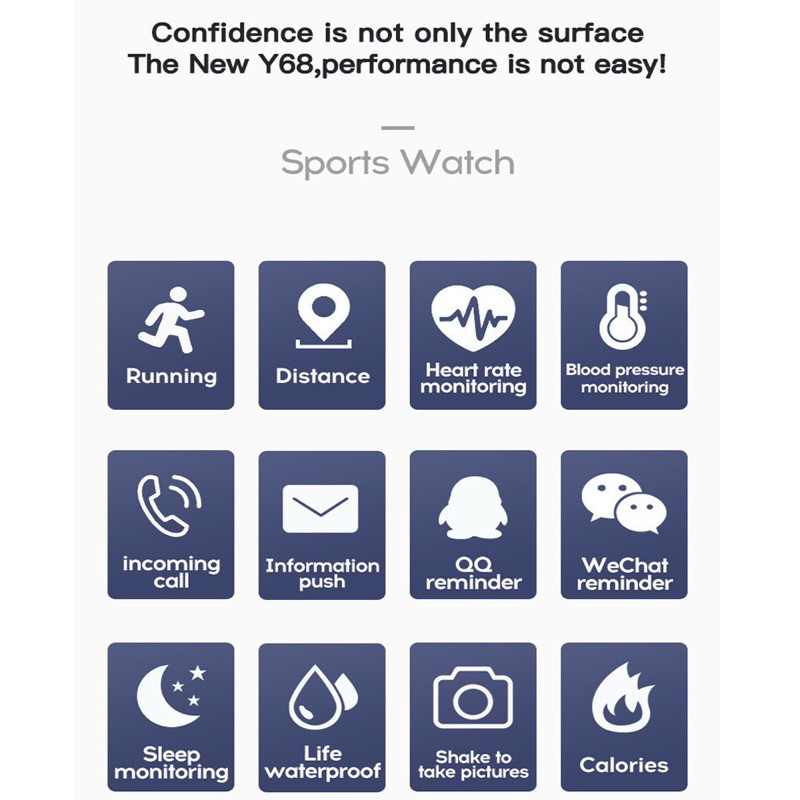 SmartWatch Y68 Sport Bluetooth Smart Watch Pelacak Kebugaran Gelang Pedometer Heart Rate