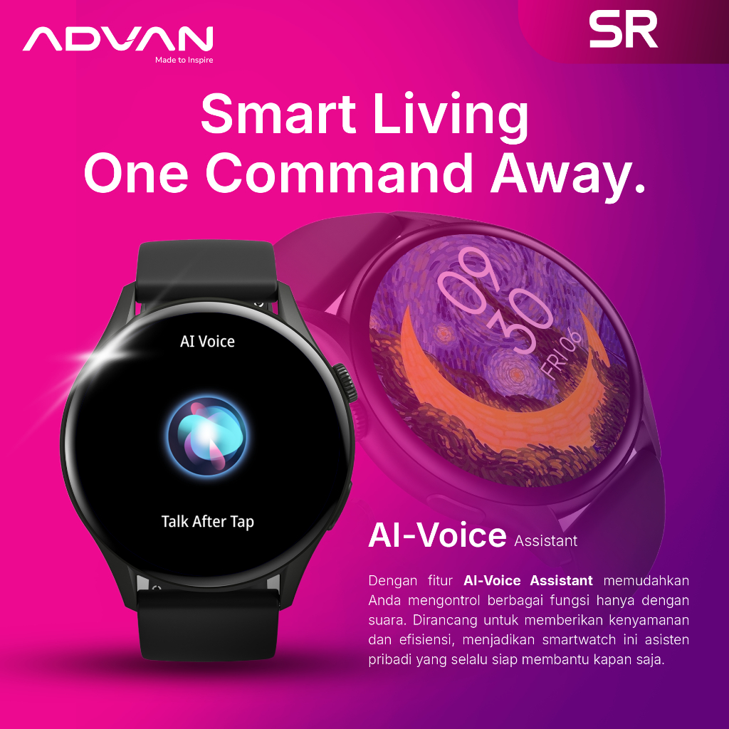 ADVAN Smartwatch SR | Amoled Display 1.43" | Bluetooth Call | Ai Voice Assistant | Waterproof IP68 | Bluetooth 5.2 | 100+ Mode Sport | Material ZInc Alloy | Up To 15-Days Battery Life
