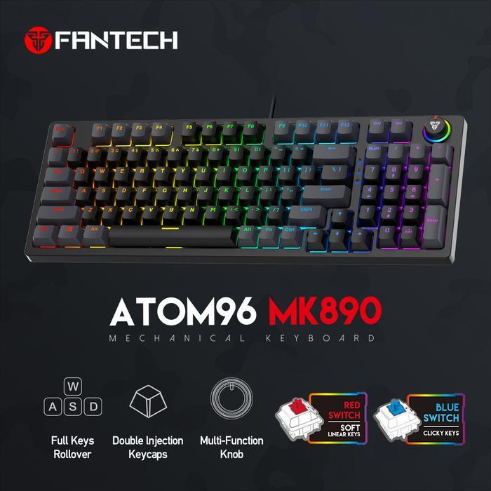FANTECH ATOM96 MK890 RGB Keyboard Gaming Mechanical Full Size - Grey, Blue Switch