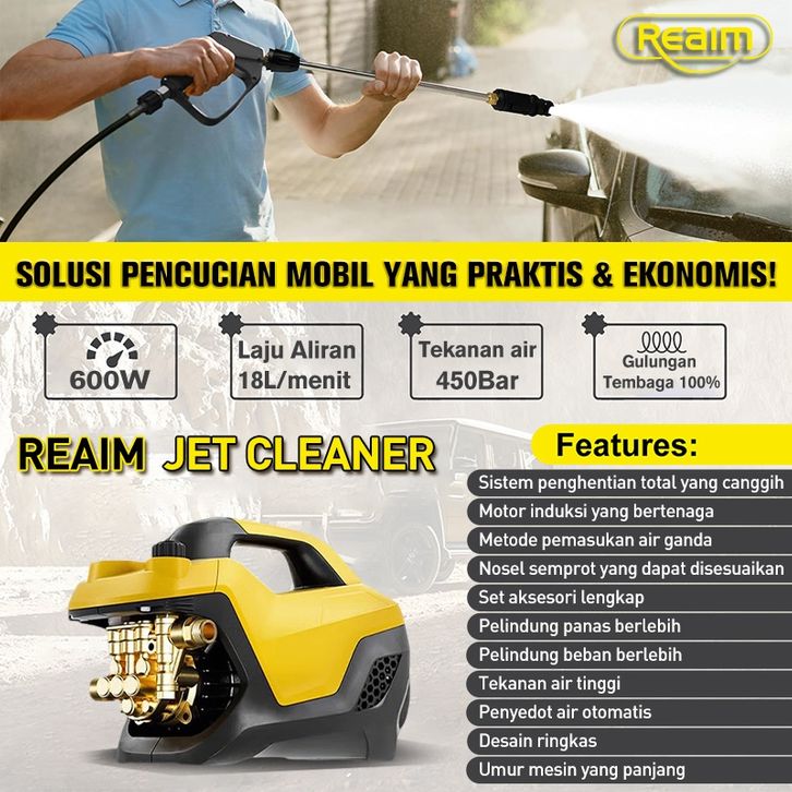 Reaim 600W Jet Cleaner 450Bar Mesin Cuci Motor Jet Cleaner Mesin Cuci Mobil Alat Cuci Motor