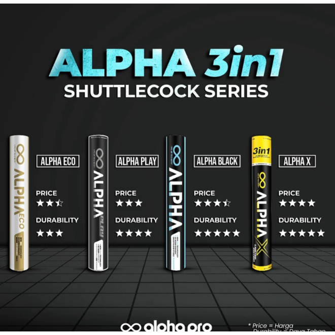 ALPHA 3 in 1 PRO ECO PLAY LIMITED Speed 78 77 Shuttlecock Cock Kok Bola Bulu Tangkis Original