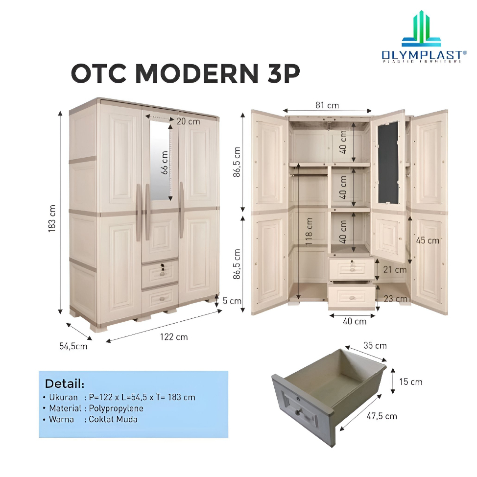 Lemari Pakaian Plastik ern Minimalis Olymplast 3 PINTU - OTC ST ERN/SCOC - Dpm96