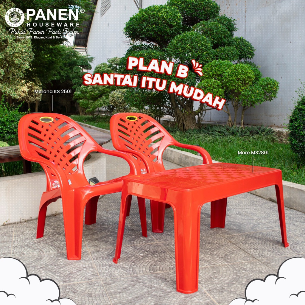 [Mall] Panen Plan B Set Kursi Meja Santai Plastik Merona / Kursi Sandaran Plastik Selonjoran Malas Tinggi