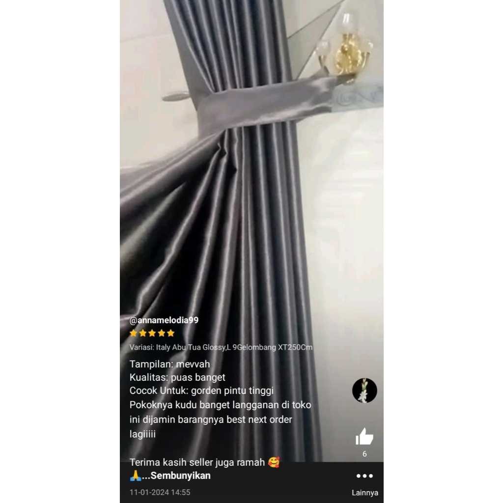 [Mall] Gorden Jendela Pintu Blckout Polos Glossy Premium Abu Mocca Aesthetic Panjang 250 - 270 Cm