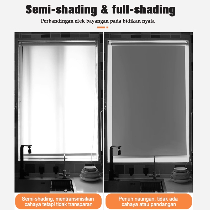 [Mall] Roller Blind tirai 80 PERSENTingkat naungan tahan air Anti minyak Tirai gulung Ukuran Roller Blinds khusus