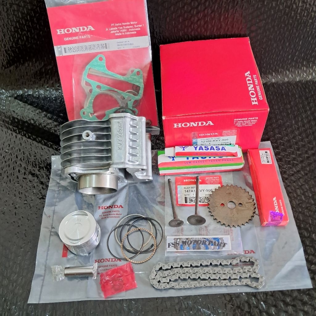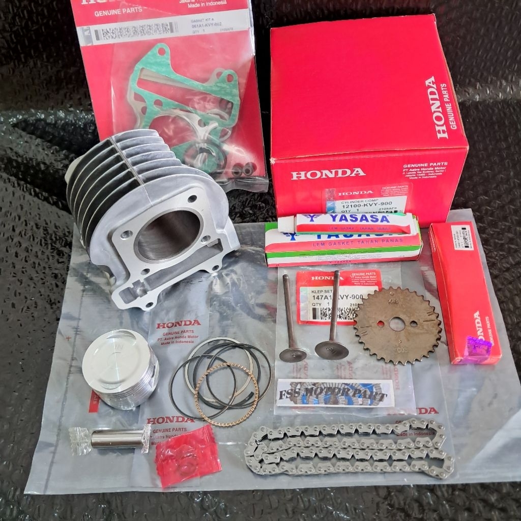 Blok Seher Komplit+Klep Set+Rantai Keteng+Gigi Sentrik Beat Lama Karbu Scoppy Spacy Kvy