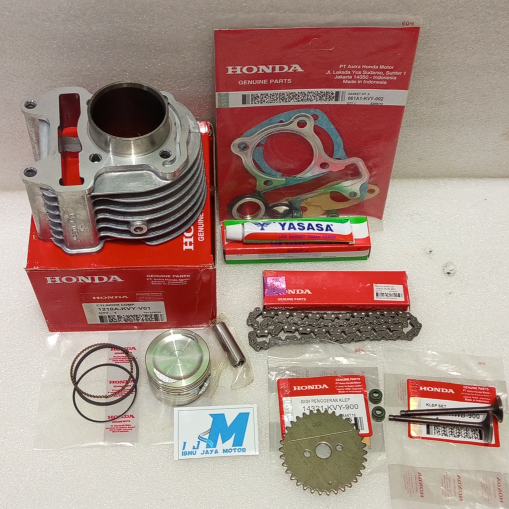 Blok Seher Cylinder Komplit 7 Item Beat Karbu Scoopy Spacy Karbu Kvy Set Rantai Keteng + Gigi Sentrik + Klepset + Topset