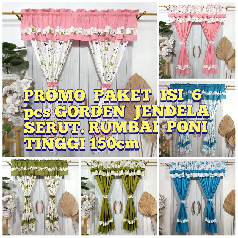 [Mall] Paket Promo isi 6 pcs Gorden Jendela Tinggi 150cm Gorden serut poni