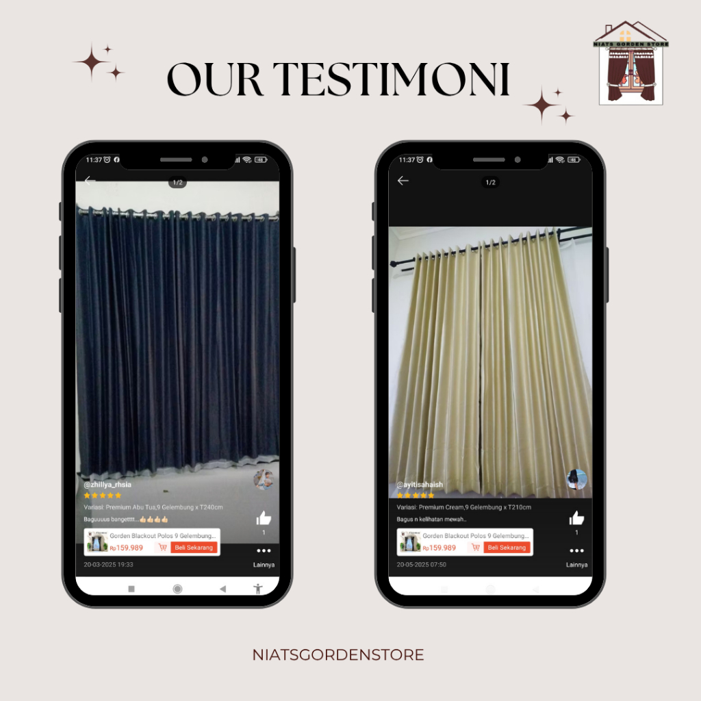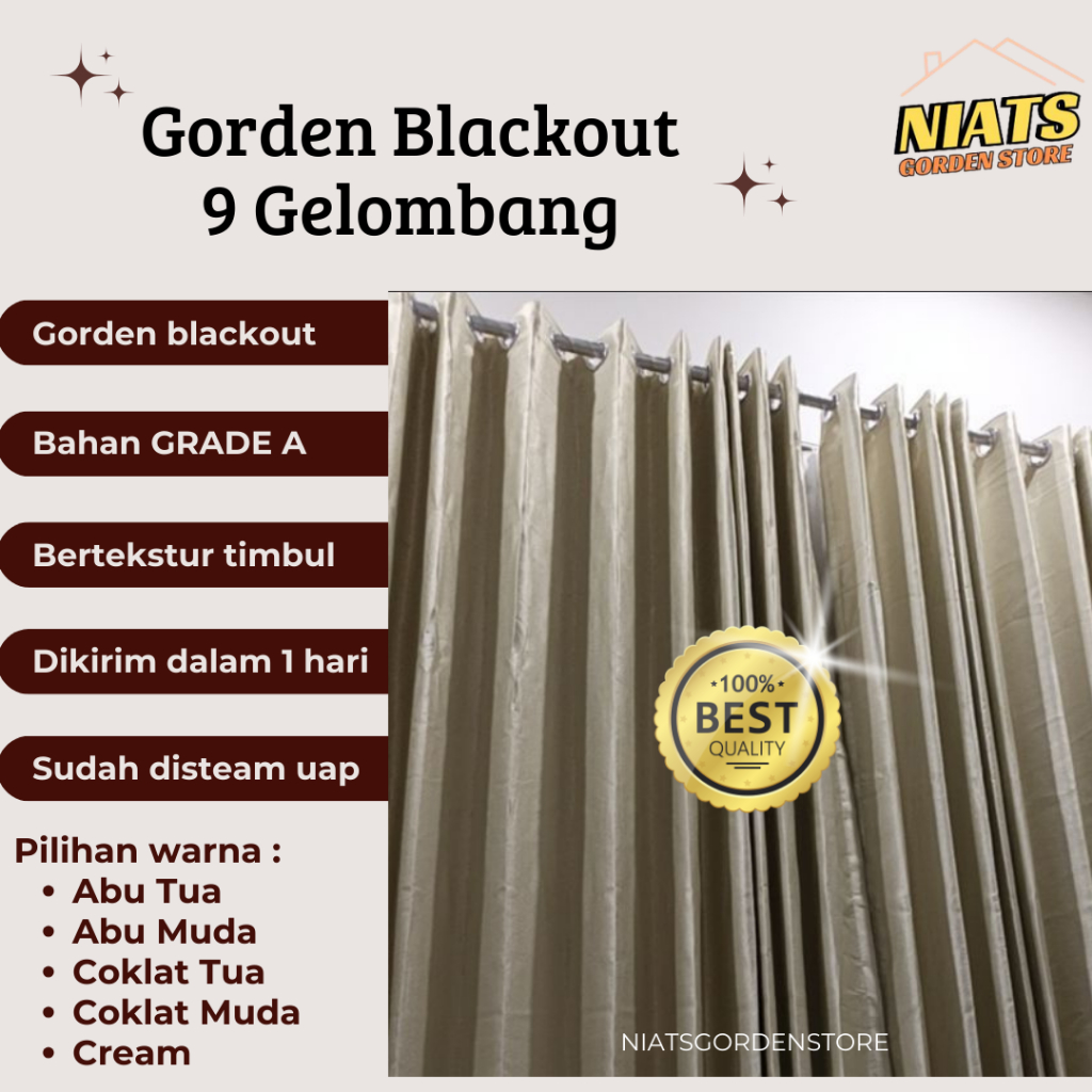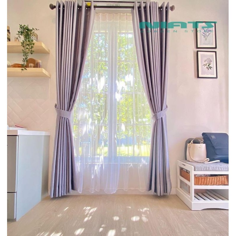 [Mall] Gorden Blackout Polos 9 Gelombang Tirai Jendela Anti Panas & Cahaya