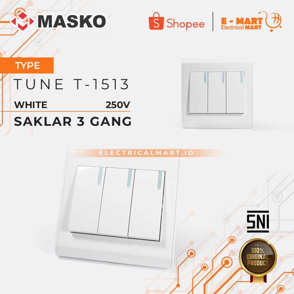 Masko Tune Saklar Triple T-1513 / Saklar 3 Gang Masko Grosir