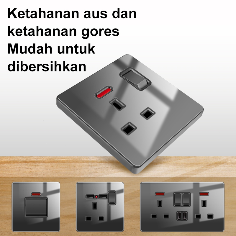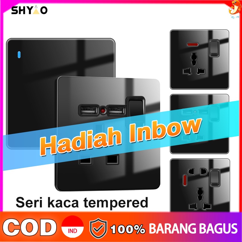 Soket Saklar Lampu/Sakelar Hitam Premium/Saklar Lampu Pengisi Daya Usb/Saklar Dinding/Kaca Tempered Hitam