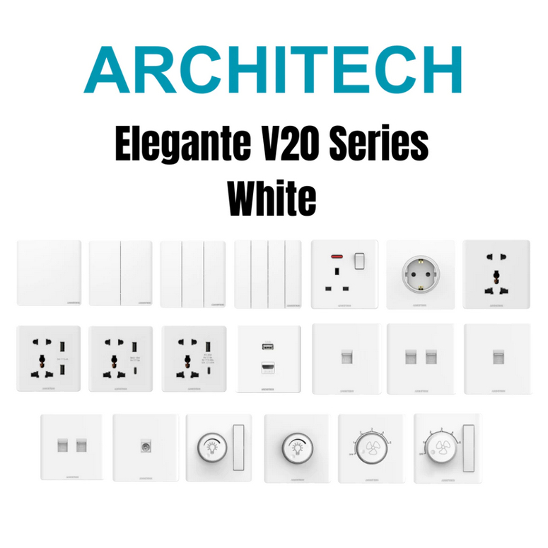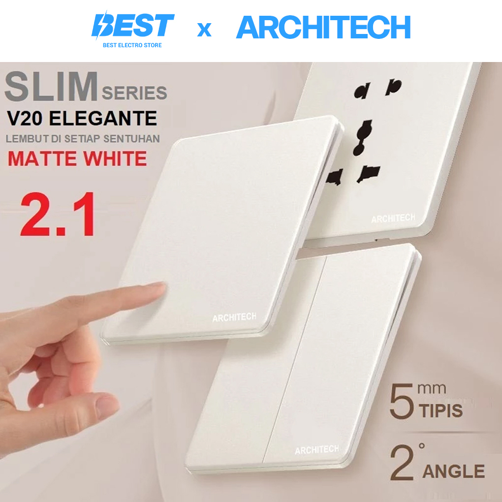Architech V20 Elegante Matte White Saklar Listrik/ Saklar Lampu/ Saklar White Series New 2.1 Gabungan