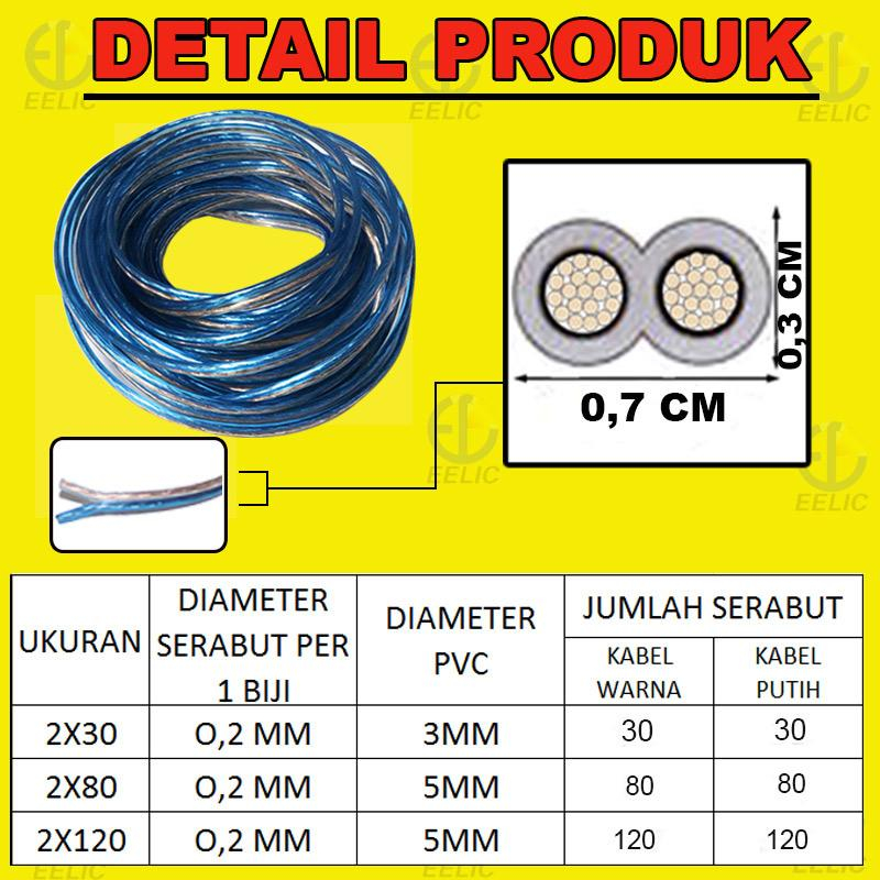 Eelic Kal-I2X30 -40M Kabel Listrik Audio Serabut Transparant 2X30