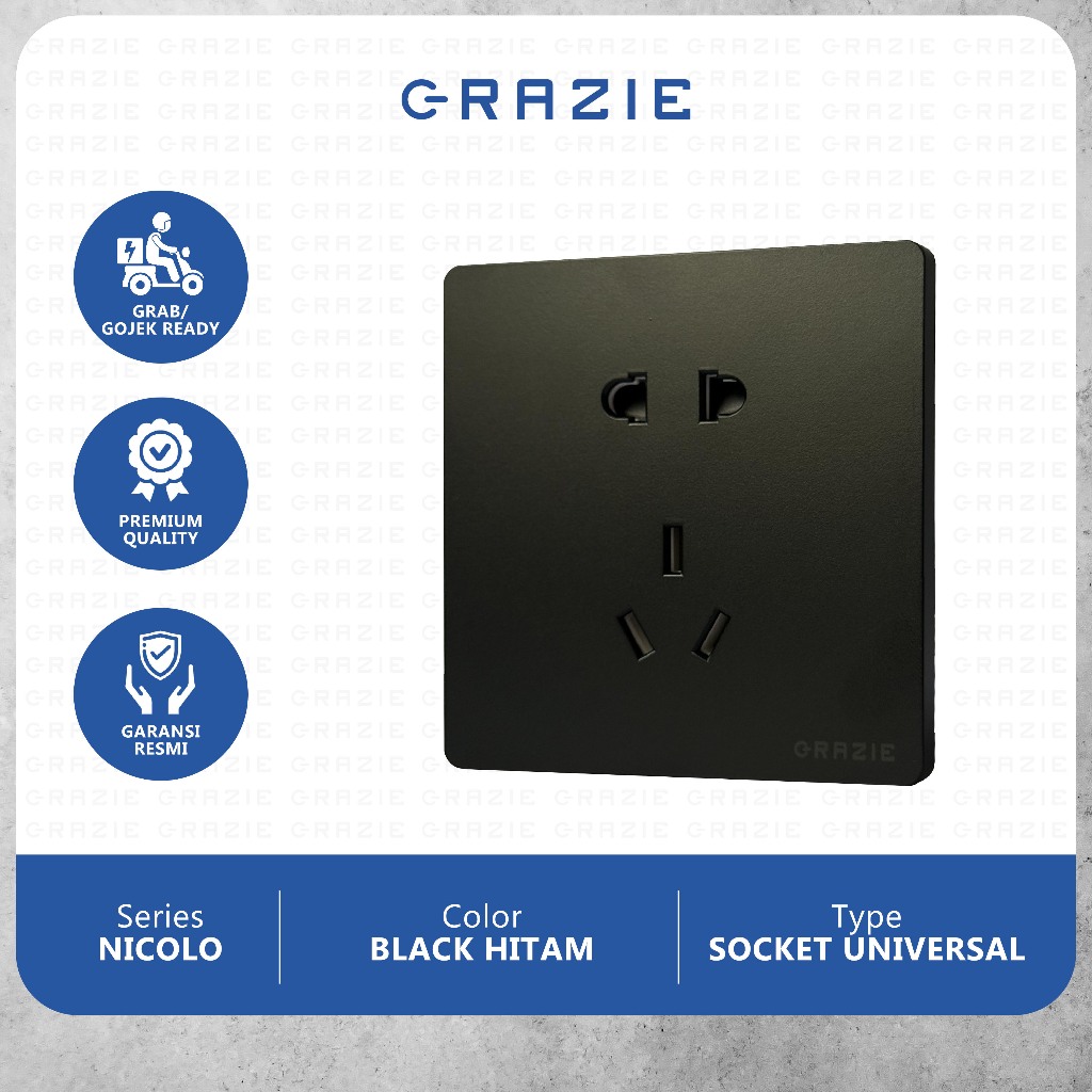 Grazie Nicolo Black Hitam Gnb /Stop Kontak/ Sakelar Saklar Rumah Grazie Nicolo Gabungan