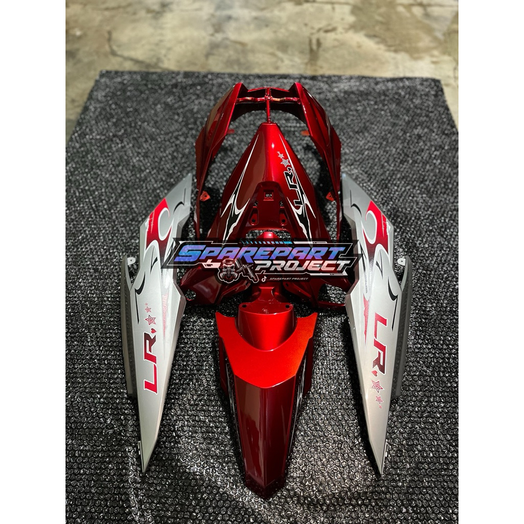 Cover Full Body Halus Honda Beat Esp Eco Tahun 2016-2019 Warna Merah Grey + Striping
