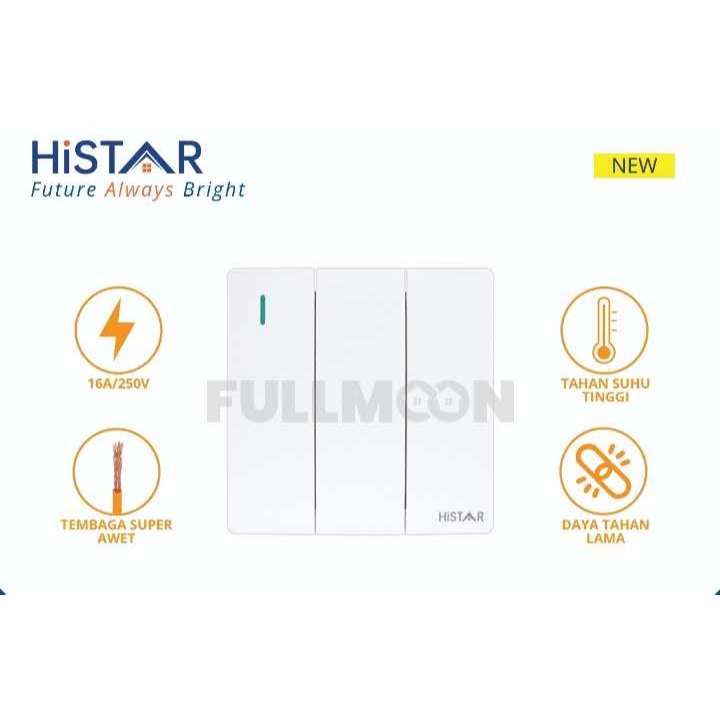 Histar Saklar Lampu Listrik Switch Triple 3 Gang Bright 10A/250V Mounting White