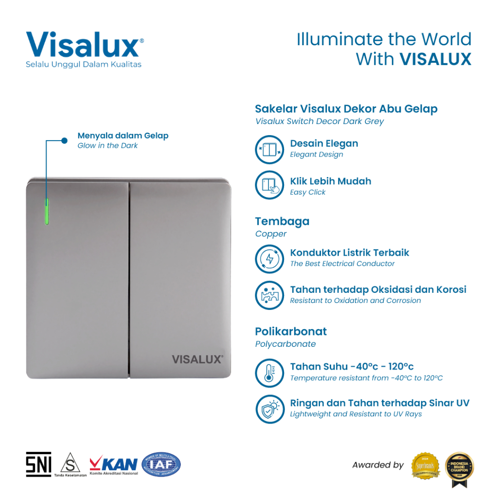 Visalux Saklar Decor Series - 2G Dark Grey / Sakelar Premium (Vsd1021-Dg)