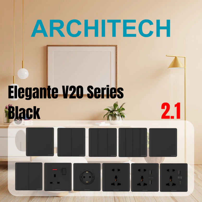 Architech V20 Elegante Black Saklar Listrik / Sakelar Lampu Architech / Saklar Mewah / Saklar Modern / Saklar Black Seri