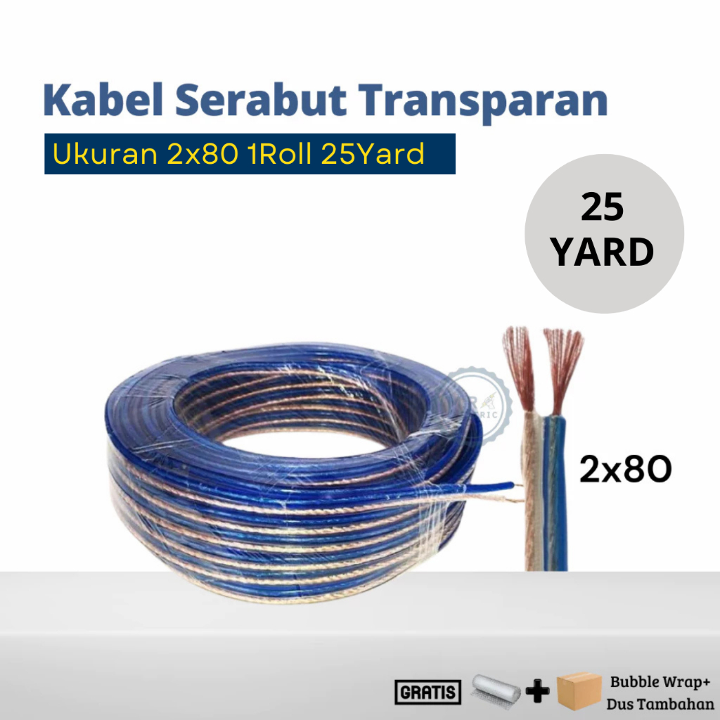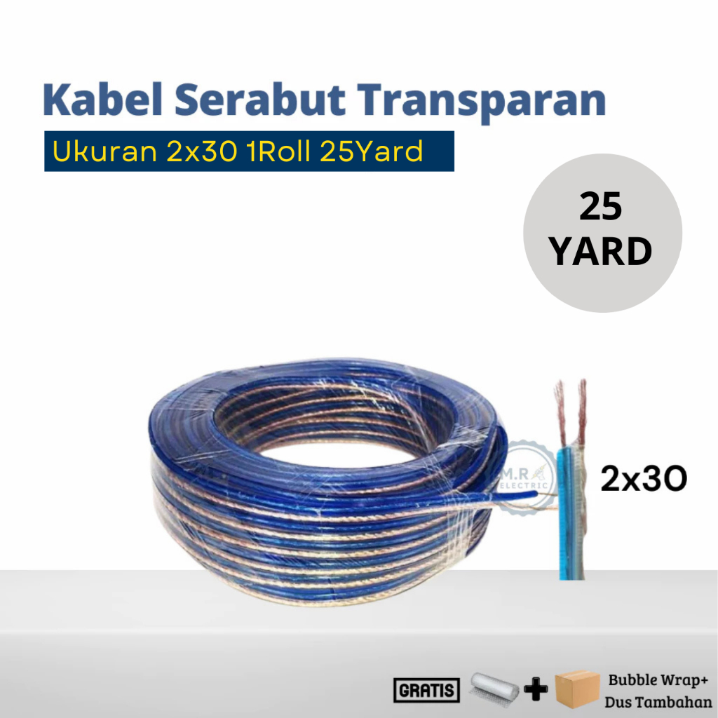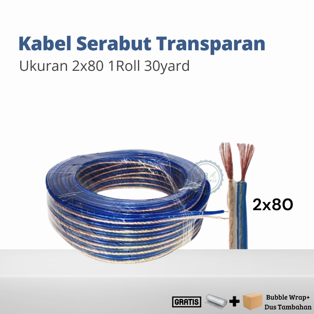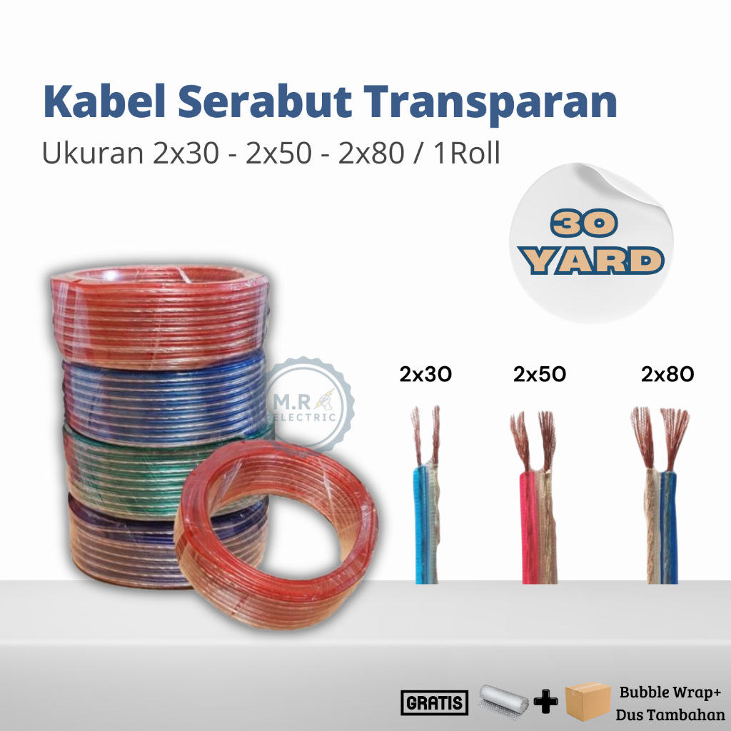 Kabel Listrik Audio Transparan Serabut 2X30 2X50 2X80 Panjang 30Yard (±27M) Kabel Speaker Sni