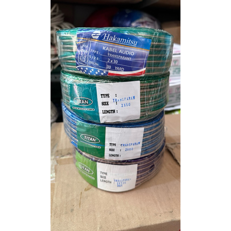 Kabel Listrik 2X120 30 Yard Serabut Kabel Transparan Isi 2 Jalur Titan / Hakamitsu