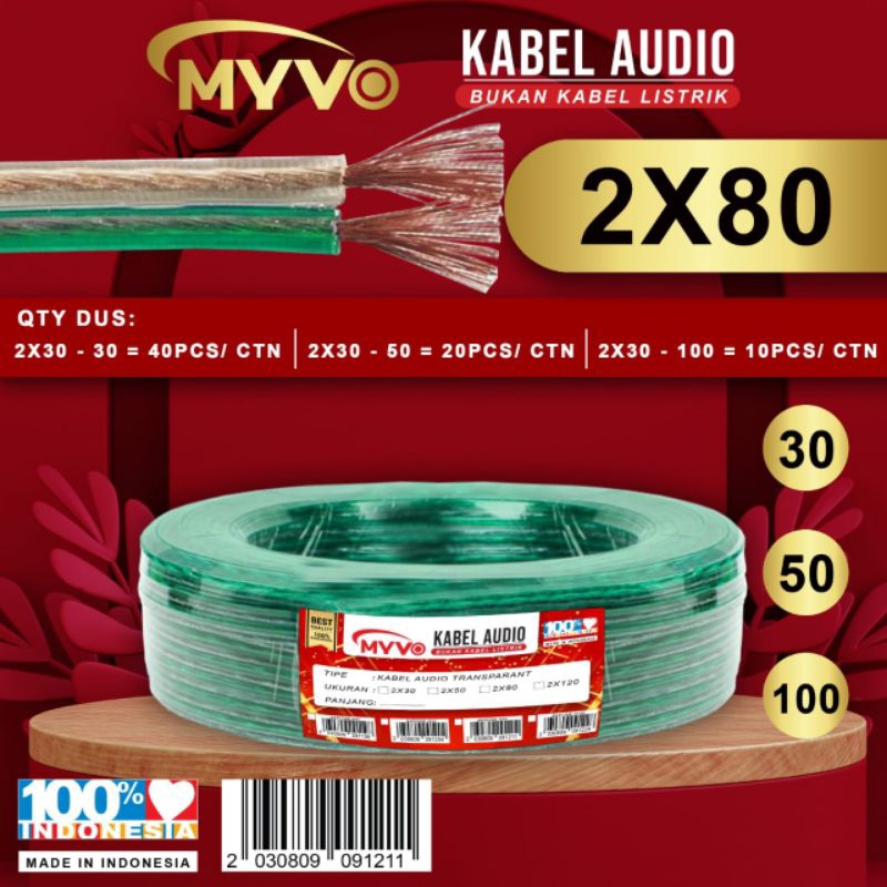 Myvo Kabel Listrik Kabel Audio Transparan 2X80 100 Yard 100Y Full Bagus Berkualitas Transparant