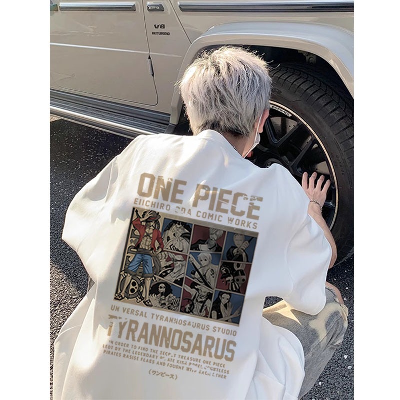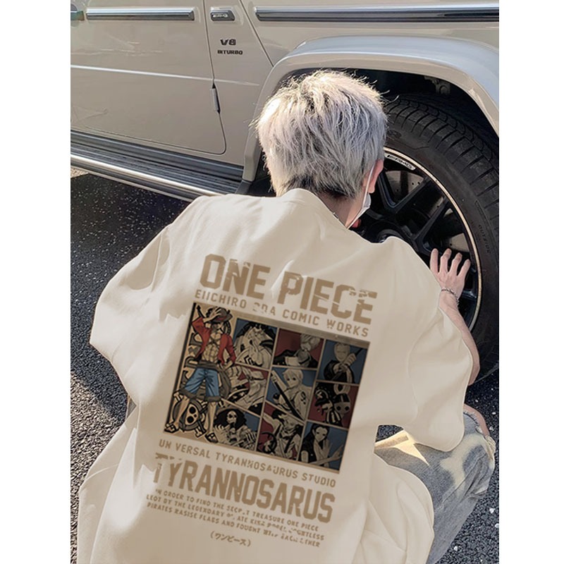 AUZY Jepang Kartun One Piece Luffy Anak topi jerami kaos pria wanita atasan Lengan Pendek T-shirt skena baju oversize