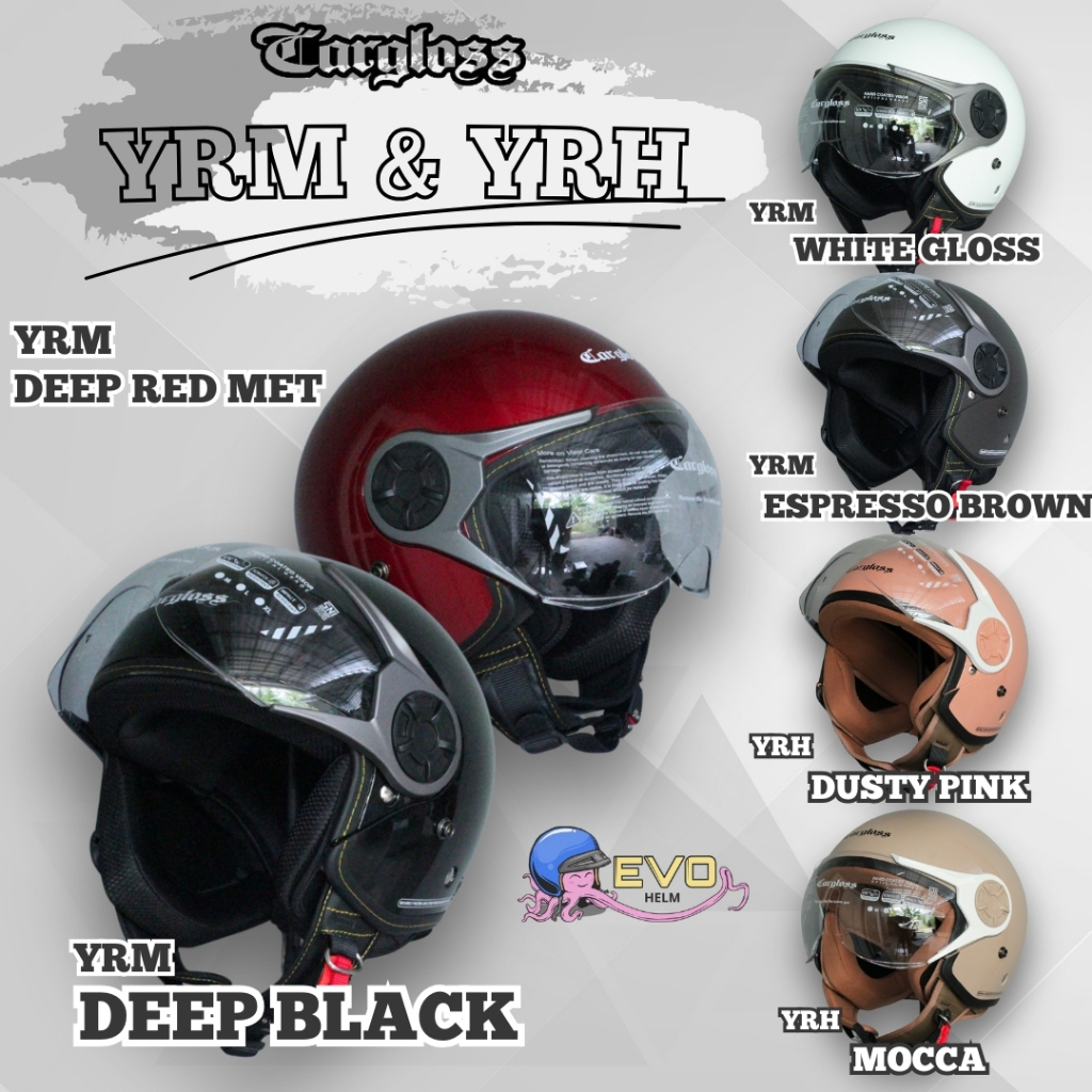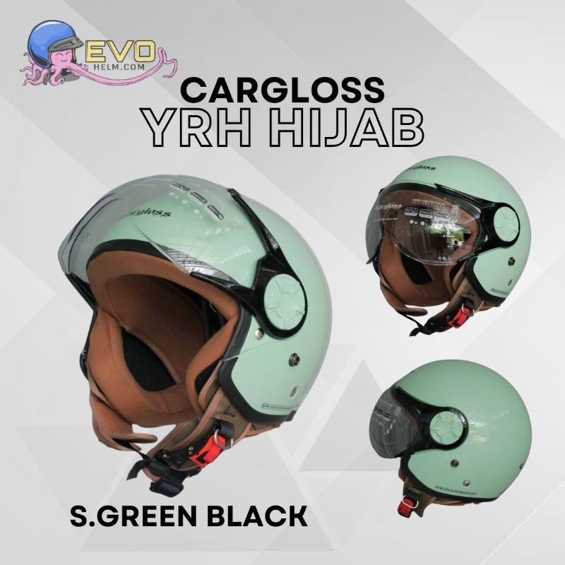 CARGLOSS YRH HIJAB RETRO & CARGLOSS YRM HELM HALF FACE SOLID MOTIF PRIA & WANITA DEWASA ORIGINAL