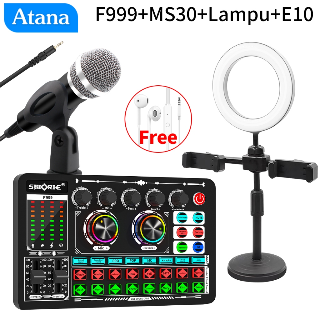 F999 Sound Card+Ms30 Mic+E10 Headset+Lampu Paket Komplit Peralatan Streaming Langsung Teratas