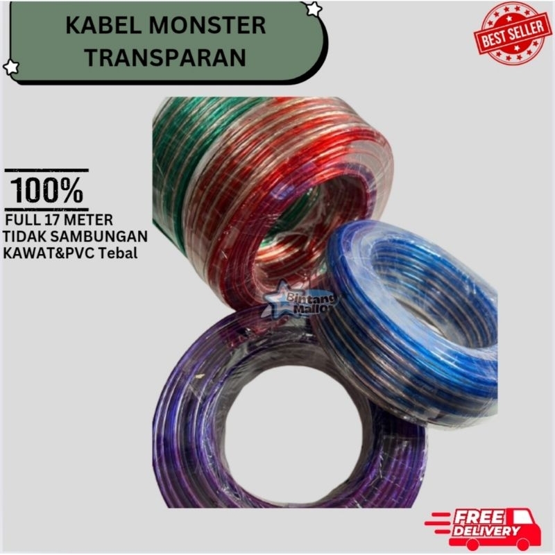 Kabel Transparan 2X30 / 2X50 / 2X80 / 30 Yard Kabel Audio Speaker / Kabel Listrik Monster Transparan