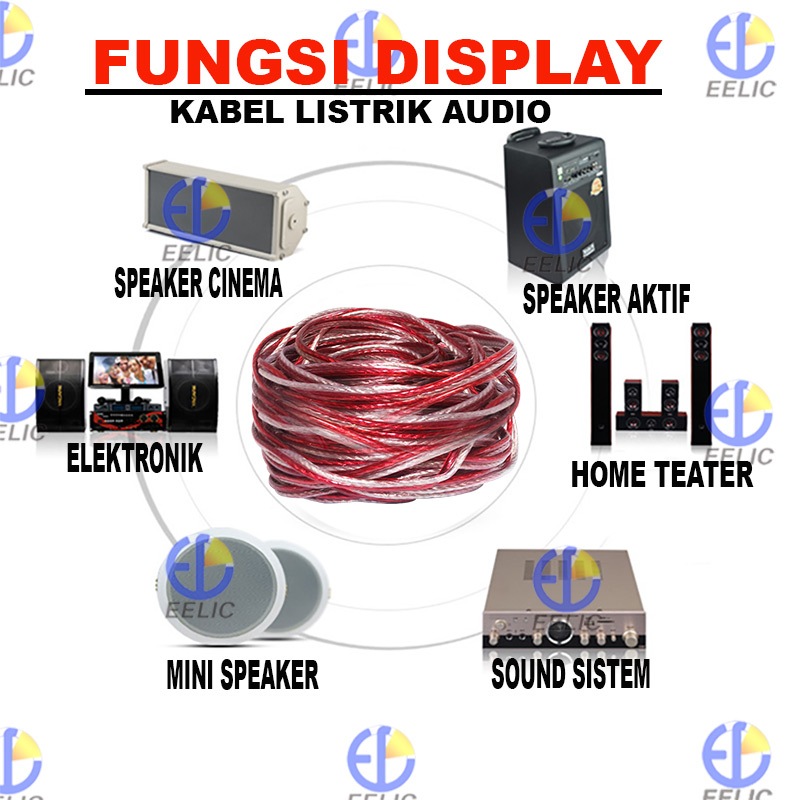 Eelic Kal-I2X80 -15M Kabel Listrik Audio Serabut Transparant 2X80 Sama Dengan 2X2.5 Mm2 Panjang 15 Meter