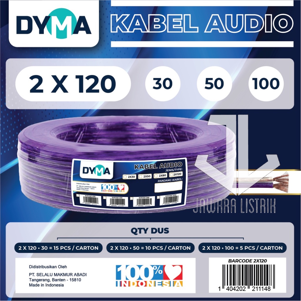 Dyma Kabel Listrik Audio Transparan 2X120 50 Yard Serabut