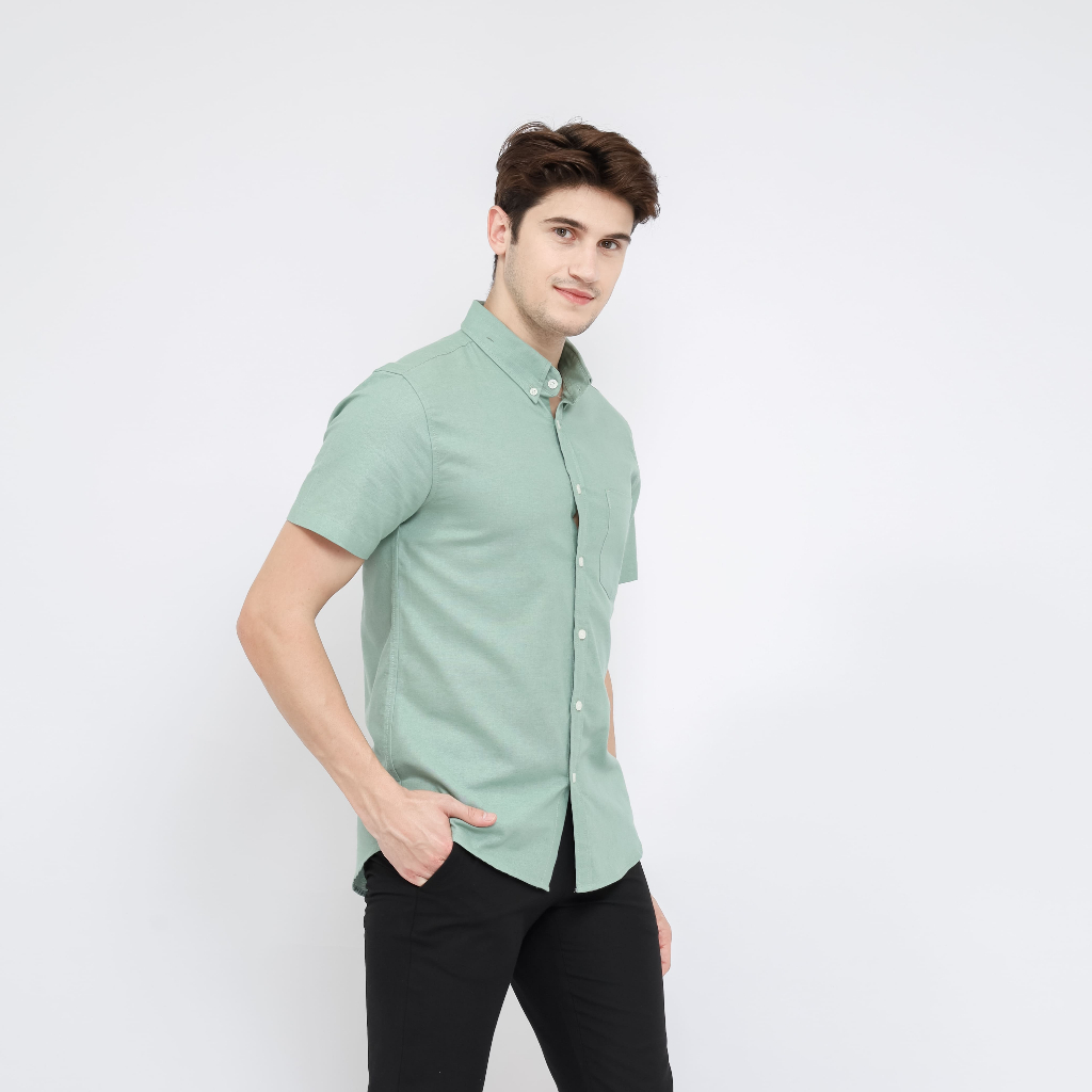 Eniqno - Kemeja Pria Lengan Pendek Katun Linen - Sage