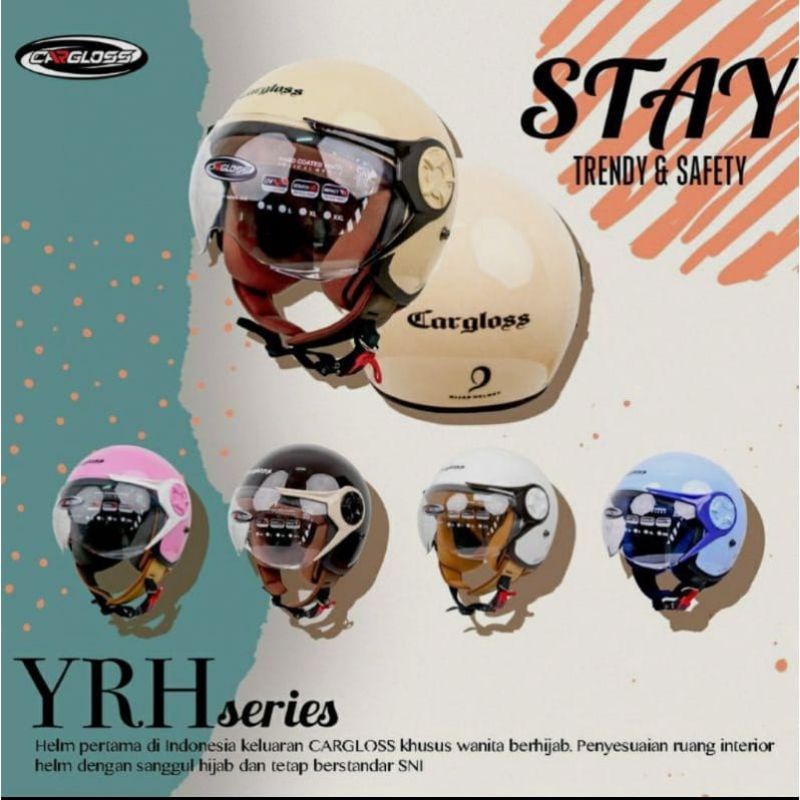 Cargloss YRH Hijab Solid SNI Helm Retro Half Face Original