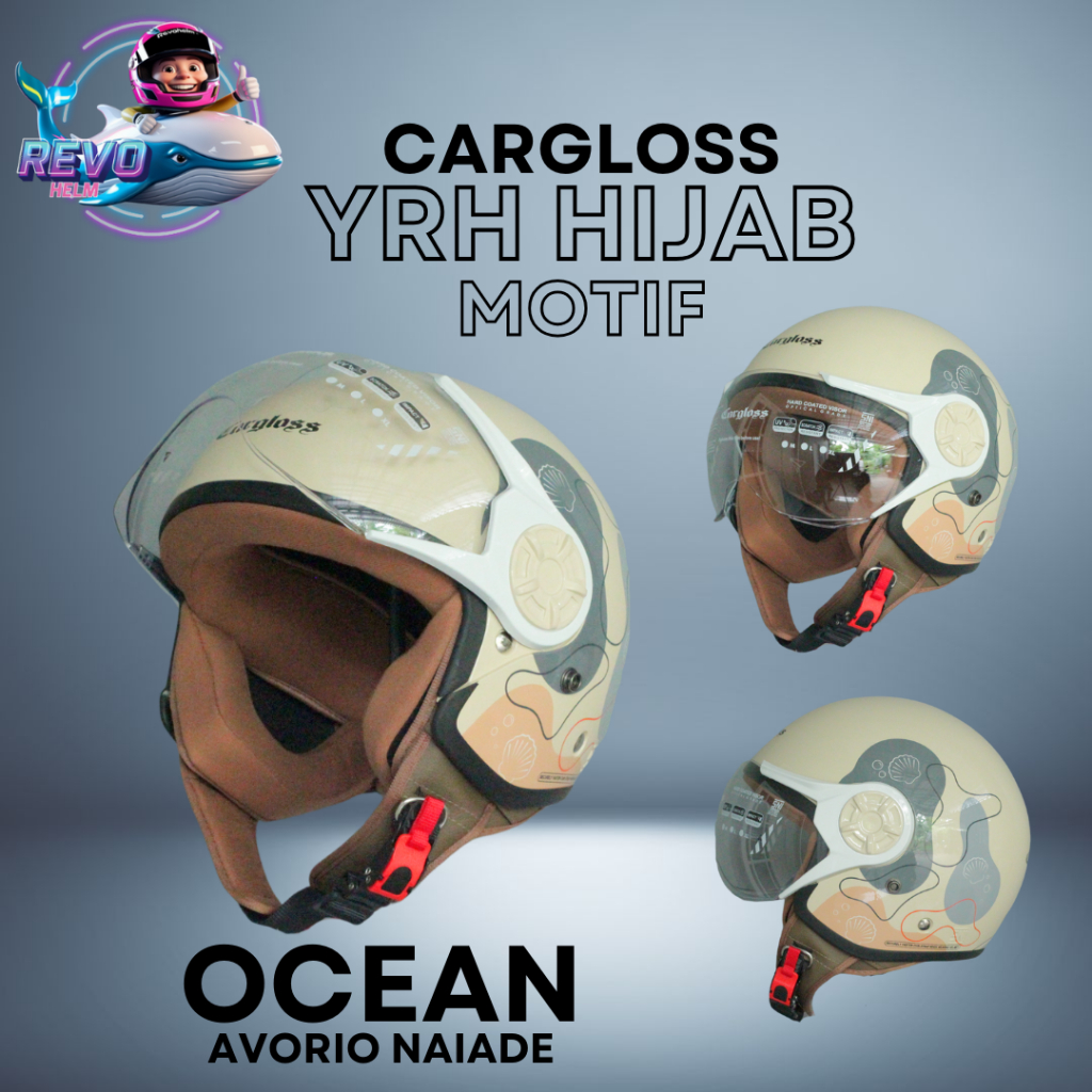 CARGLOSS YRH HIJAB RETRO HELM HALF FACE SOLID MOTIF ORI, CARGLOSS OFFICIAL STORE, CARGLOSS HELMET