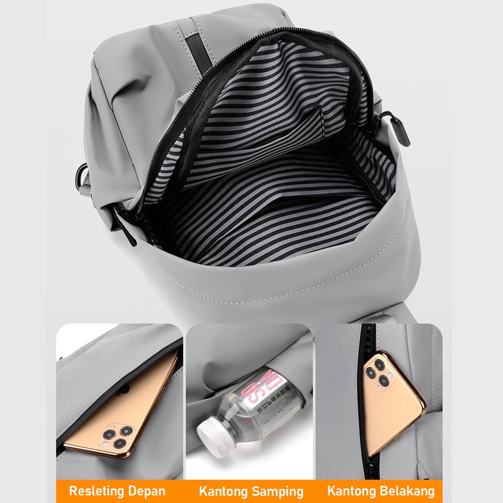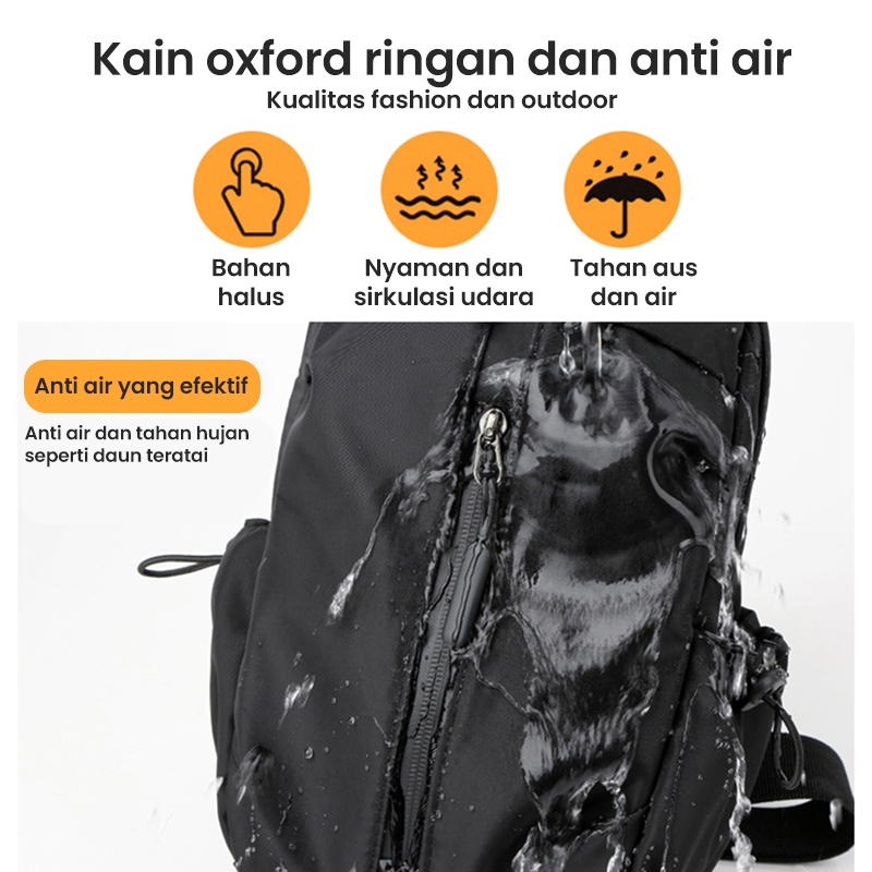 Freeknight Tas Selempang Pria USB Sling Bag Waterproof Tas Slempang Polos Fashion Casual Black TS714