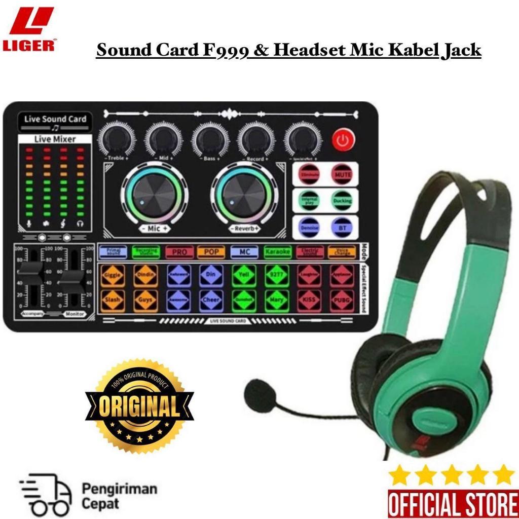 Onegplus - Soundcard F999 Full Set + Headset X10 Microphone Paket Lengkap Headphone Microphone Audio Jack Dan Sound Card