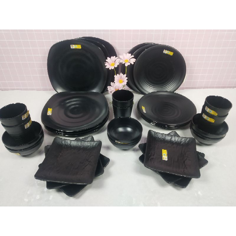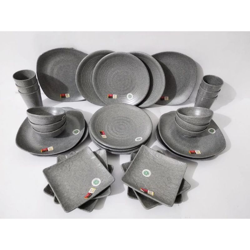 Paket Melamin Japan Stone isi 30pcs (P2308) en dragon - Ready warna abu abu, hitam