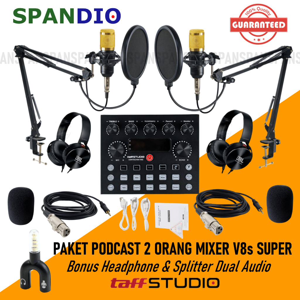 Paket Podcast 2 Orang Mic Microphone Bm800 Mixer V8 V8 Plus Lengkap