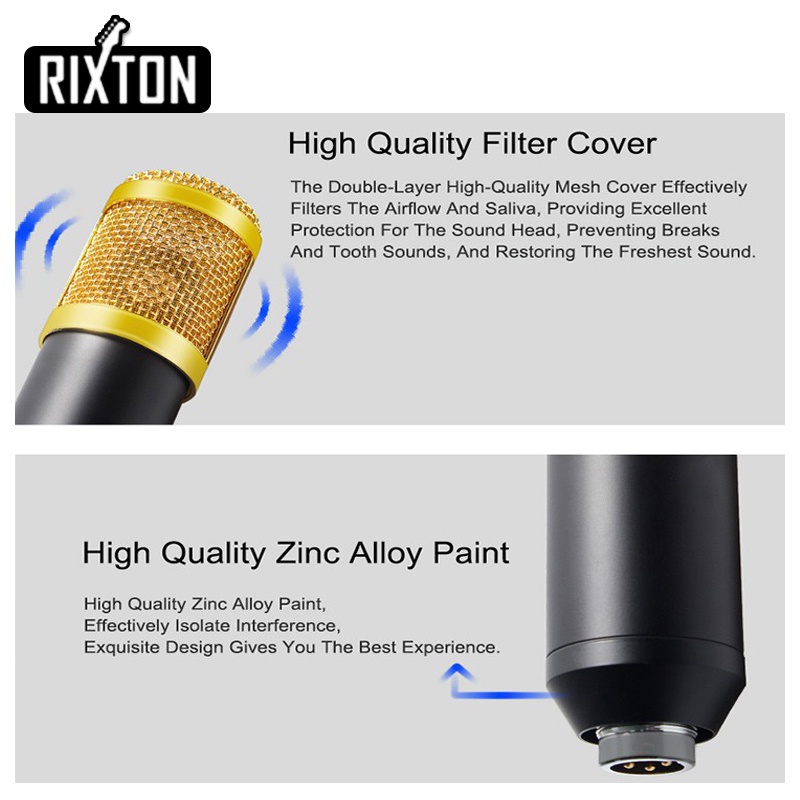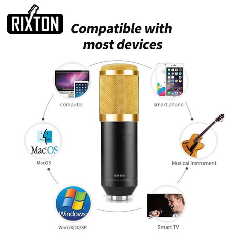 Rixton Bm800 Origina Paket Komplit Mic Condenser Bm 800 + Stand + V8 Soundcard+ Free Audio Splitter Recording Microphone