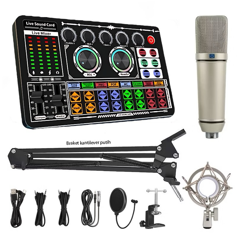 F999-U87 Mic Condenser Paket Lengkap Soundcard Mic Set Dengan Braket Kantilever Komplit Peralatan Live Streaming