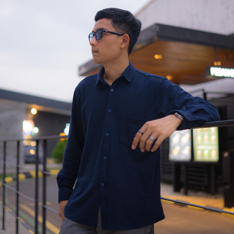 GOODETHICS - Kemeja Pria Basic Polos Lengan Panjang Hitam